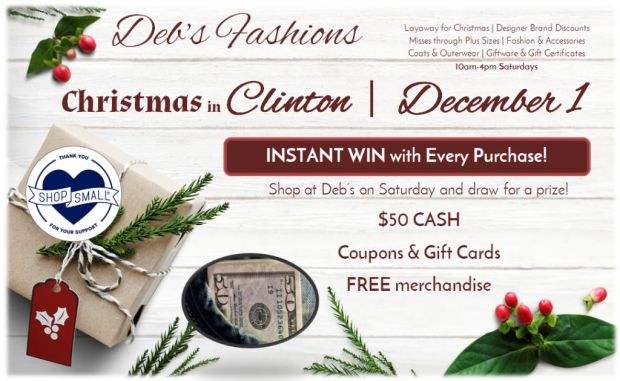 Win Cash and save Big during Christmas in Clinton at Deb’s Fashions!