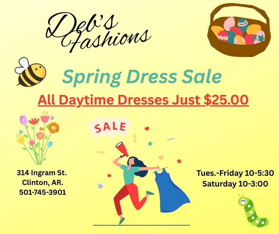 Deb’s is starting off the Spring Season with a Dress Sale on All Daytime Dresses! Just $25.00! Junior, Missy and Plus Sizes! Hurry in for best selection! April 18, 2025April 17, 2025 Related